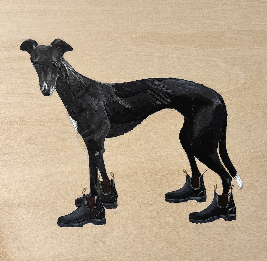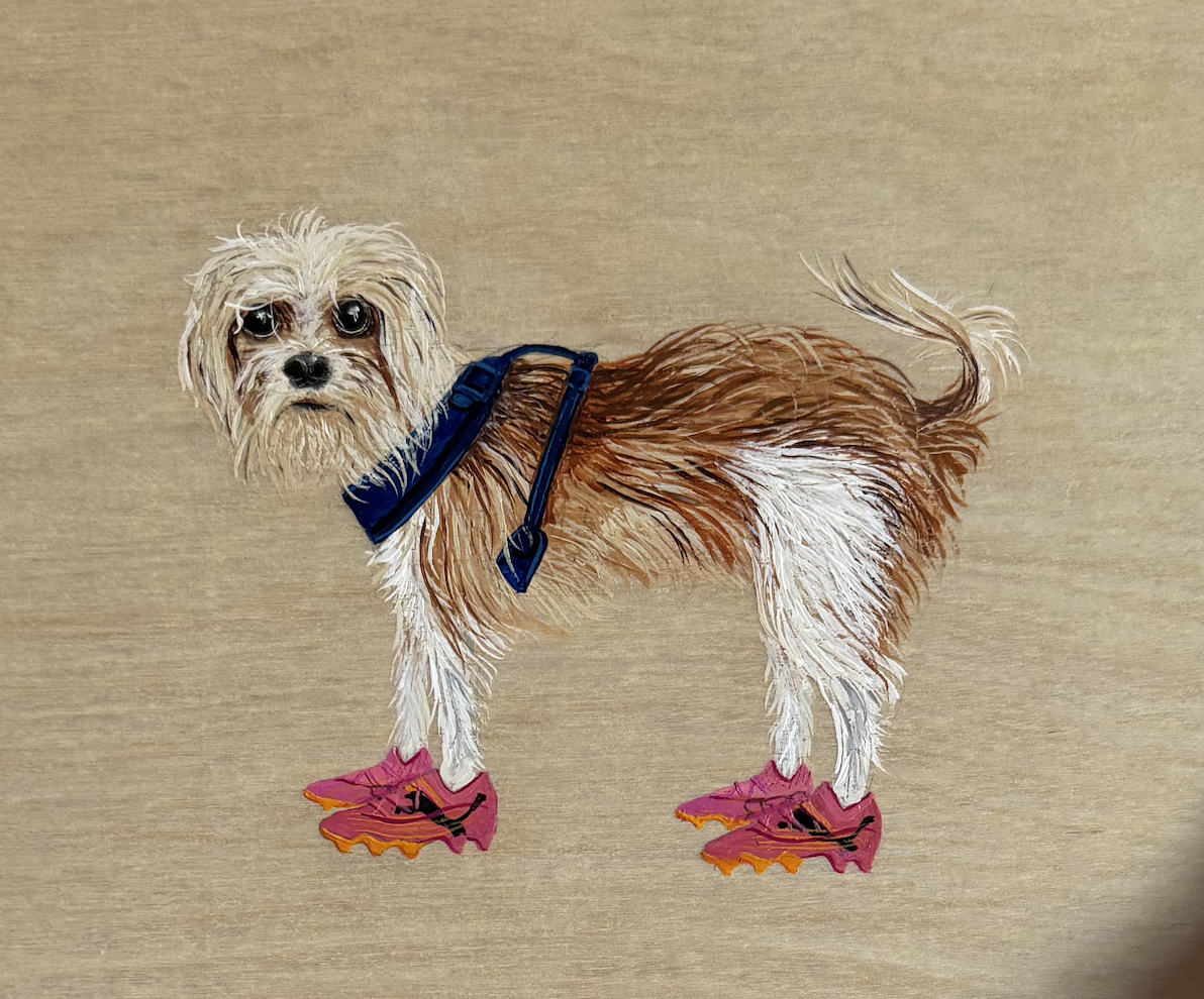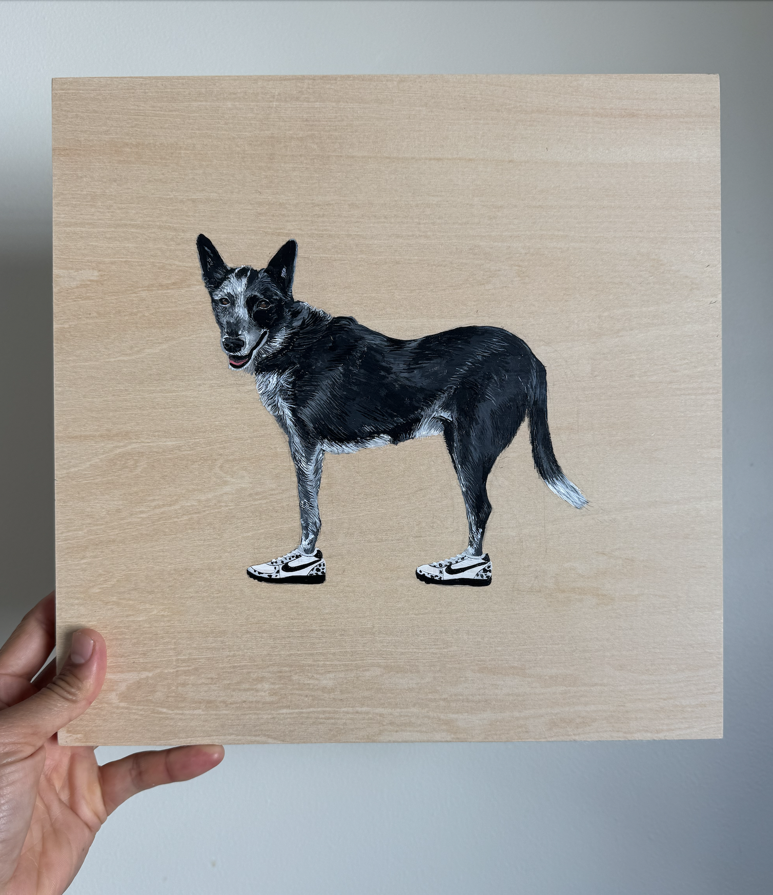 To secure a Dogs Wearing Shoes piece, visit the link here and to put down a deposit. You will be provided with instructions on how to help me bring your vision to life.